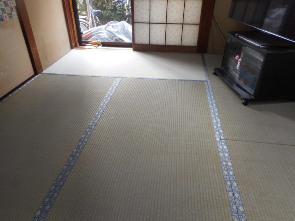 | お客様の声 | ![]() 施工前 懇意にしている工務店さんに畳の張替えをお願いしたら、二階堂畳店さんが来ました。 見積もりの段階で、畳に違和感があり、畳の交換をすることになりました。 畳の芯材からい草の表や縁の説明を受けました。 やはり、い草の香りが気持ちよいので、国産表の人気№1の畳にしました。 朝一番で寸法を測り、その日の夕方に納品してもらいました。 |